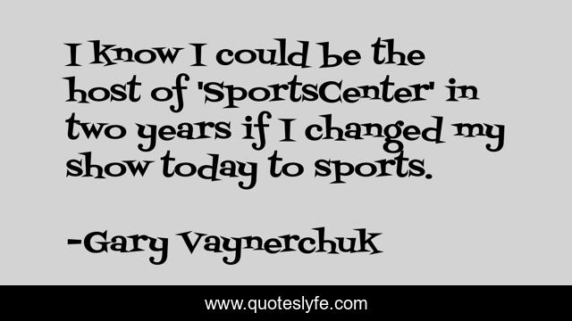 This page presents the quote "I know I could be the host of 'SportsCenter' in two years if I changed my show today to sports.". Author of this quote is Gary Vaynerchuk. This quote is about today, years,.