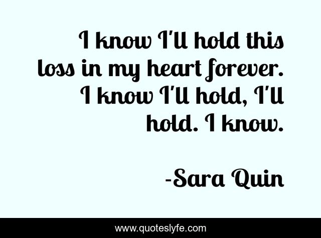 This page presents the quote "I know I'll hold this loss in my heart forever. I know I'll hold, I'll hold. I know.". Author of this quote is Sara Quin. This quote is about tegan-and-sara, floorplan, tegan-quin, heartbreak, sara-quin, sainthood,.