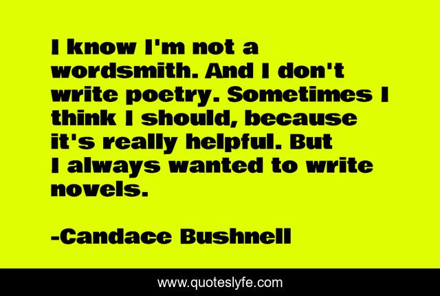 This page presents the quote "I know I'm not a wordsmith. And I don't write poetry. Sometimes I think I should, because it's really helpful. But I always wanted to write novels.". Author of this quote is Candace Bushnell. This quote is about sometimes, think,.