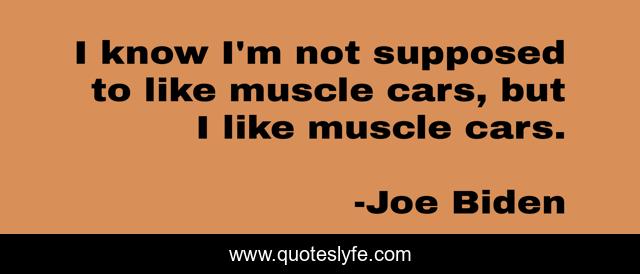 This page presents the quote "I know I'm not supposed to like muscle cars, but I like muscle cars.". Author of this quote is Joe Biden. This quote is about muscle, like,.