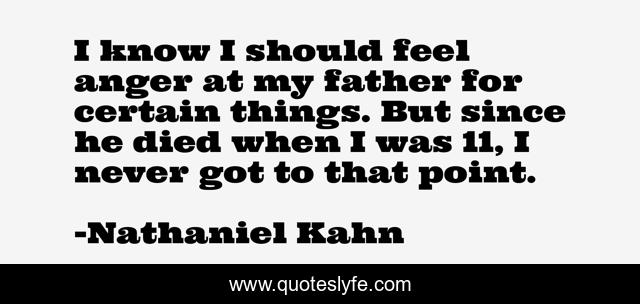 "Nathaniel Kahn Quotes." Quoteslyfe.com, 2025. Sat. 06 Dec. 2025. <https://www.quoteslyfe.com/quote/I-know-I-should-feel-anger-at-327198>.