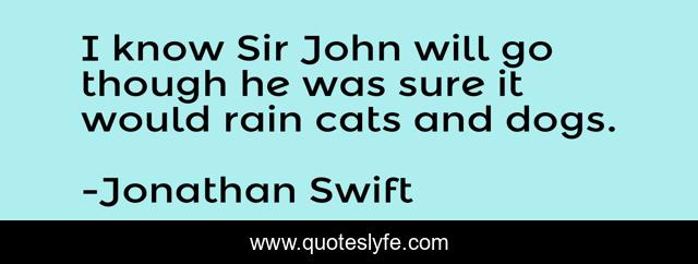This page presents the quote "I know Sir John will go though he was sure it would rain cats and dogs.". Author of this quote is Jonathan Swift. .
