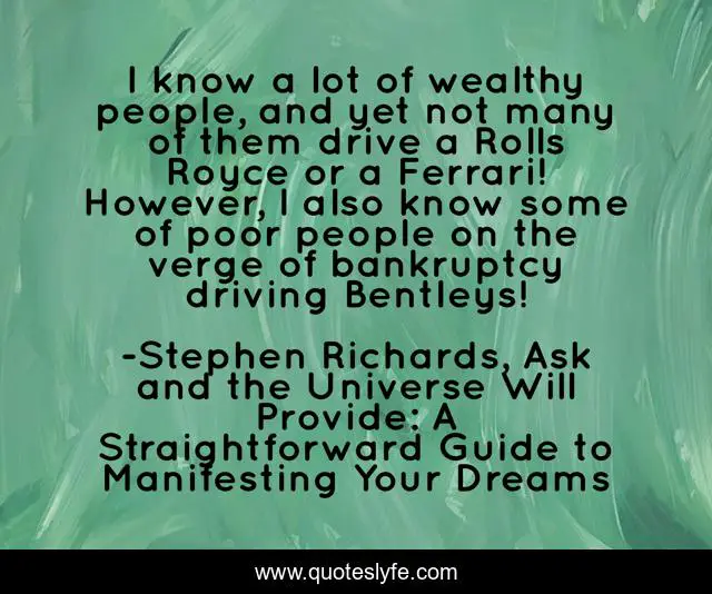 "Stephen Richards, Ask and the Universe Will Provide: A Straightforward Guide to Manifesting Your Dreams Quotes." Quoteslyfe.com, 2025. Tue. 09 Dec. 2025. <https://www.quoteslyfe.com/quote/I-know-a-lot-of-wealthy-people-44773>.