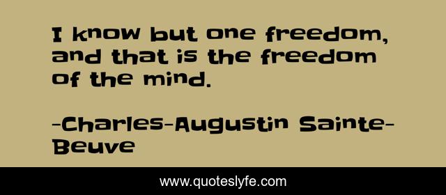 This page presents the quote "I know but one freedom, and that is the freedom of the mind.". Author of this quote is Charles-Augustin Sainte-Beuve. This quote is about freedom, mind,.
