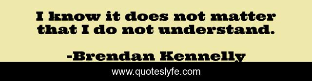 This page presents the quote "I know it does not matter that I do not understand.". Author of this quote is Brendan Kennelly. This quote is about faith, mysticism, wonder,.