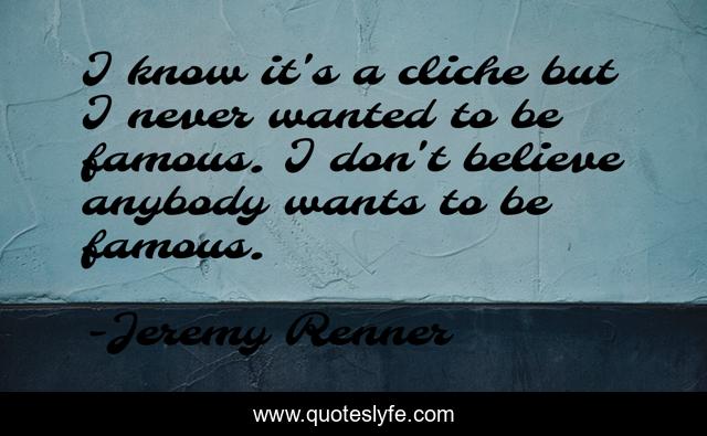 This page presents the quote "I know it's a cliche but I never wanted to be famous. I don't believe anybody wants to be famous.". Author of this quote is Jeremy Renner. .