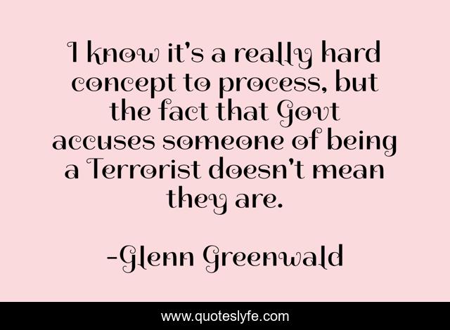 This page presents the quote "I know it's a really hard concept to process, but the fact that Govt accuses someone of being a Terrorist doesn't mean they are.". Author of this quote is Glenn Greenwald. This quote is about war-on-terror, terrorism, twitter, united-states,.