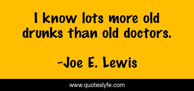 This page presents the quote "I know lots more old drunks than old doctors.". Author of this quote is Joe E. Lewis. This quote is about , drink, eat, merry,.
