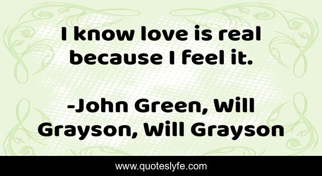 "John Green, Will Grayson, Will Grayson Quotes." Quoteslyfe.com, 2025. Sat. 06 Dec. 2025. <https://www.quoteslyfe.com/quote/I-know-love-is-real-because-I-248661>.