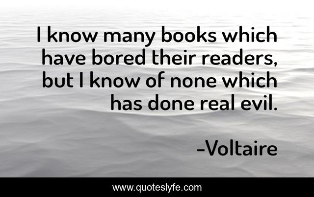 This page presents the quote "I know many books which have bored their readers, but I know of none which has done real evil.". Author of this quote is Voltaire. .