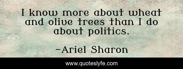 This page presents the quote "I know more about wheat and olive trees than I do about politics.". Author of this quote is Ariel Sharon. This quote is about olive, trees,.