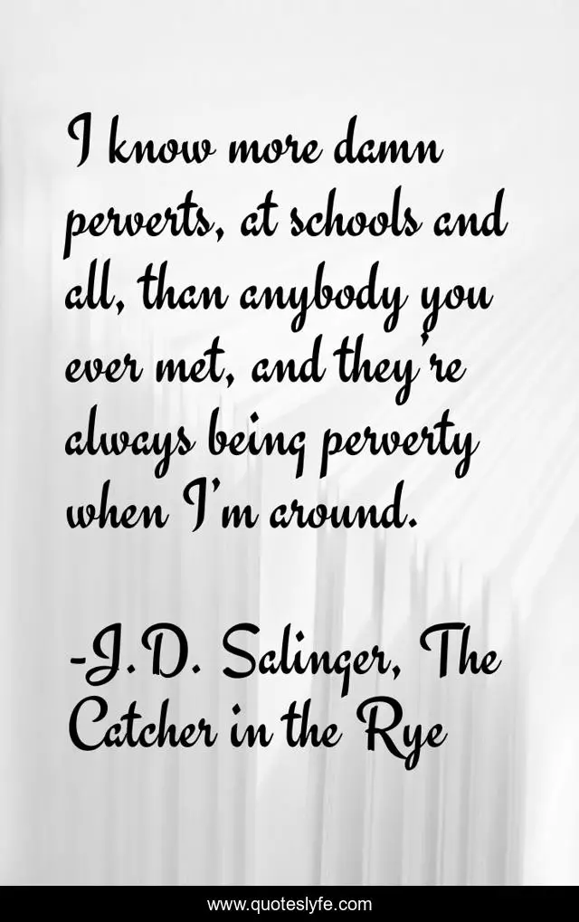 "J.D. Salinger, The Catcher in the Rye Quotes." Quoteslyfe.com, 2025. Sat. 06 Dec. 2025. <https://www.quoteslyfe.com/quote/I-know-more-damn-perverts-at-schools-40698>.