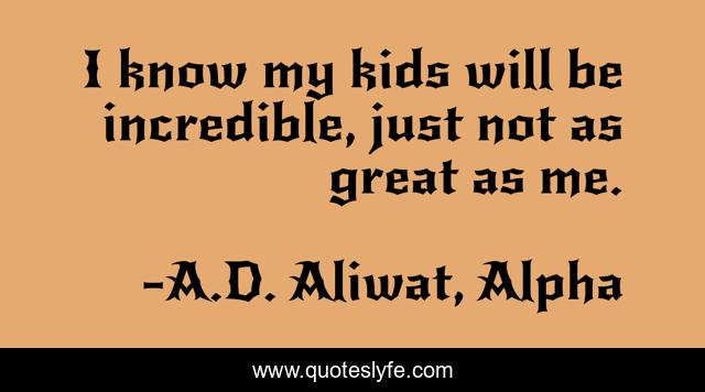 This page presents the quote "I know my kids will be incredible, just not as great as me.". Author of this quote is A.D. Aliwat, Alpha. This quote is about alpha-male, parenting, humor,.