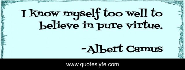 This page presents the quote "I know myself too well to believe in pure virtue.". Author of this quote is Albert Camus. .