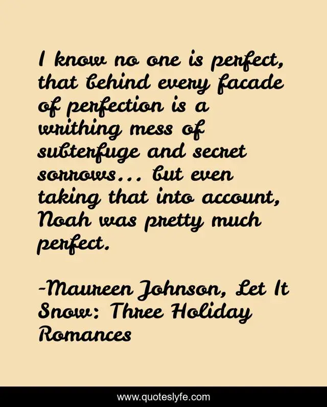 This page presents the quote "I know no one is perfect, that behind every facade of perfection is a writhing mess of subterfuge and secret sorrows... but even taking that into account, Noah was pretty much perfect.". Author of this quote is Maureen Johnson, Let It Snow: Three Holiday Romances. .