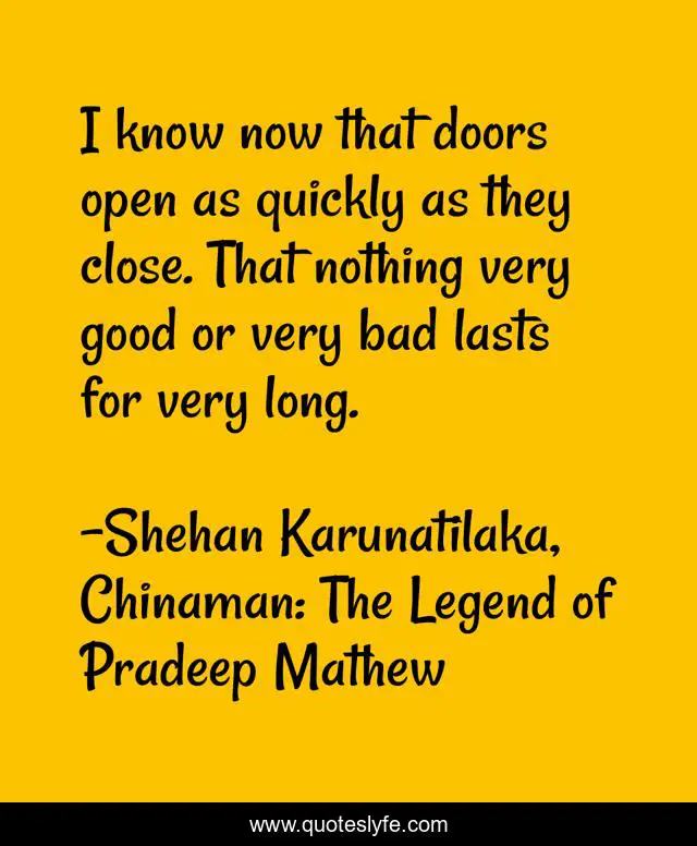 "Shehan Karunatilaka, Chinaman: The Legend of Pradeep Mathew Quotes." Quoteslyfe.com, 2025. Sat. 06 Dec. 2025. <https://www.quoteslyfe.com/quote/I-know-now-that-doors-open-as-124970>.