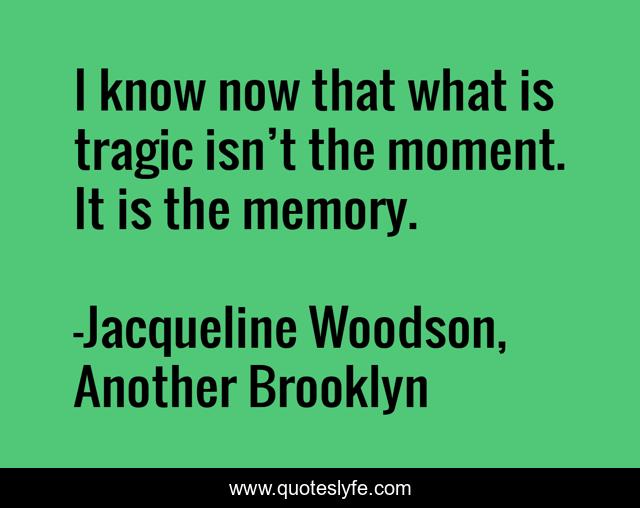 This page presents the quote "I know now that what is tragic isn’t the moment. It is the memory.". Author of this quote is Jacqueline Woodson, Another Brooklyn. This quote is about tragedy, memory,.