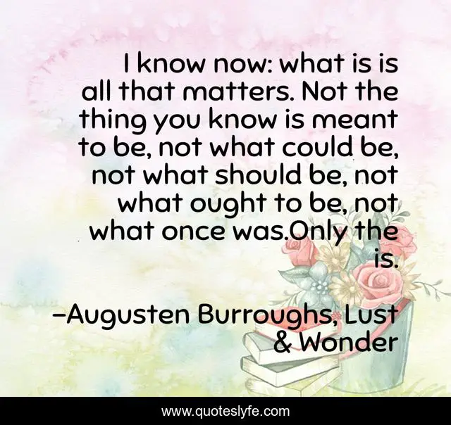 "Augusten Burroughs, Lust & Wonder Quotes." Quoteslyfe.com, 2025. Sun. 07 Dec. 2025. <https://www.quoteslyfe.com/quote/I-know-now-what-is-is-all-218116>.