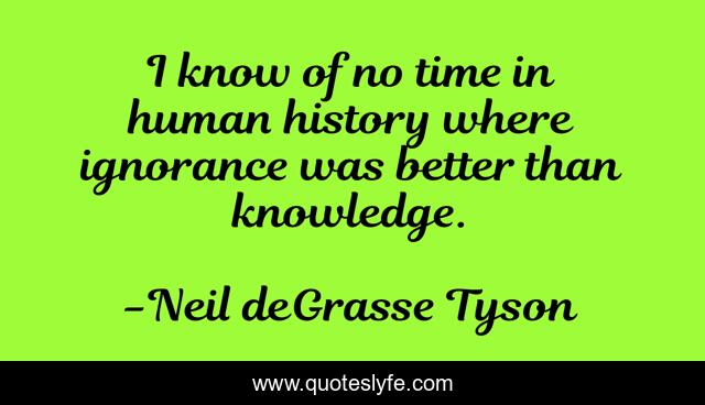 This page presents the quote "I know of no time in human history where ignorance was better than knowledge.". Author of this quote is Neil deGrasse Tyson. This quote is about knowledge, history,.