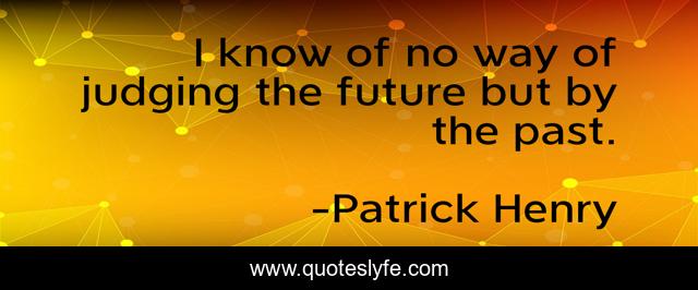 This page presents the quote "I know of no way of judging the future but by the past.". Author of this quote is Patrick Henry. .
