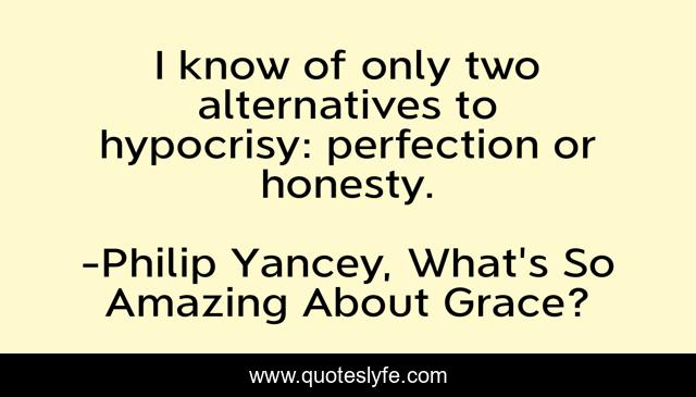 This page presents the quote "I know of only two alternatives to hypocrisy: perfection or honesty.". Author of this quote is Philip Yancey, What's So Amazing About Grace?. .