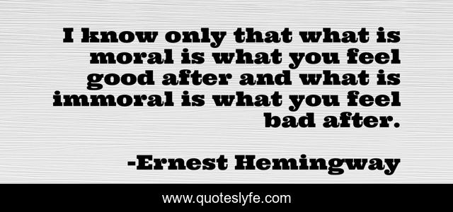 This page presents the quote "I know only that what is moral is what you feel good after and what is immoral is what you feel bad after.". Author of this quote is Ernest Hemingway. .