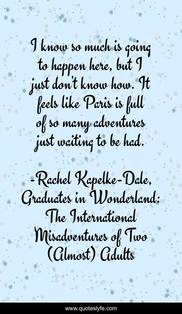 "Rachel Kapelke-Dale, Graduates in Wonderland: The International Misadventures of Two (Almost) Adults Quotes." Quoteslyfe.com, 2025. Sun. 07 Dec. 2025. <https://www.quoteslyfe.com/quote/I-know-so-much-is-going-to-280786>.