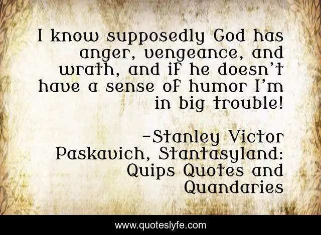 "Stanley Victor Paskavich, Stantasyland: Quips Quotes and Quandaries Quotes." Quoteslyfe.com, 2025. Mon. 08 Dec. 2025. <https://www.quoteslyfe.com/quote/I-know-supposedly-God-has-anger-vengeance-238414>.