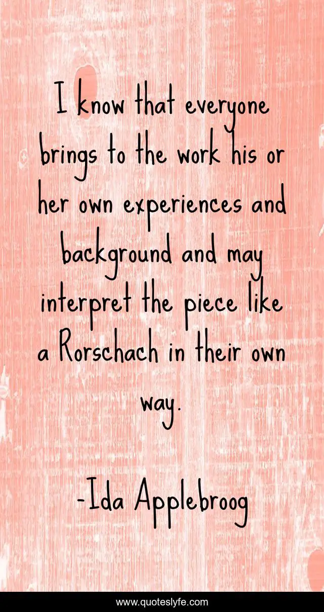 "Ida Applebroog Quotes." Quoteslyfe.com, 2025. Sun. 07 Dec. 2025. <https://www.quoteslyfe.com/quote/I-know-that-everyone-brings-to-the-268064>.