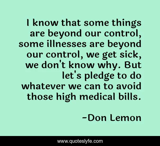 I know that some things are beyond our control, some illnesses are beyond our control, we get sick, we don't know why. But let's pledge to do whatever we can to avoid those high medical bills.