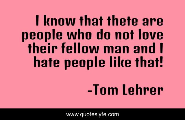 This page presents the quote "I know that thete are people who do not love their fellow man and I hate people like that!". Author of this quote is Tom Lehrer. .