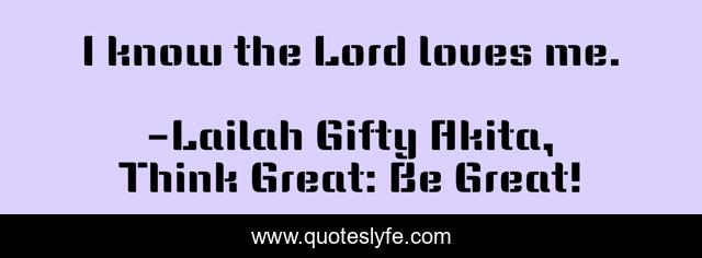 "Lailah Gifty Akita, Think Great: Be Great! Quotes." Quoteslyfe.com, 2025. Sat. 06 Dec. 2025. <https://www.quoteslyfe.com/quote/I-know-the-Lord-loves-me-78463>.