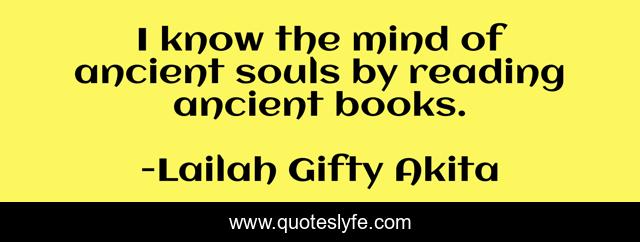 This page presents the quote "I know the mind of ancient souls by reading ancient books.". Author of this quote is Lailah Gifty Akita. This quote is about self-education, books, reading,.