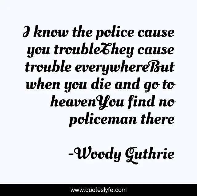"Woody Guthrie Quotes." Quoteslyfe.com, 2025. Sat. 06 Dec. 2025. <https://www.quoteslyfe.com/quote/I-know-the-police-cause-you-troubleThey-174341>.