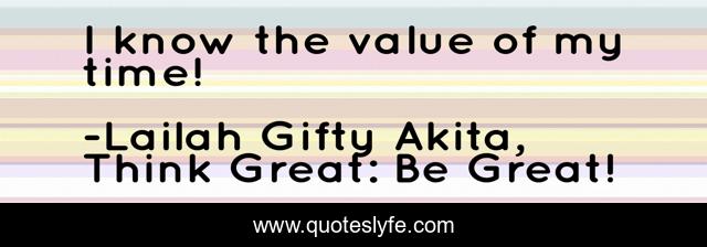 "Lailah Gifty Akita, Think Great: Be Great! Quotes." Quoteslyfe.com, 2025. Fri. 05 Dec. 2025. <https://www.quoteslyfe.com/quote/I-know-the-value-of-my-time-80466>.