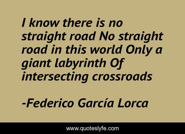 "Federico García Lorca Quotes." Quoteslyfe.com, 2025. Fri. 05 Dec. 2025. <https://www.quoteslyfe.com/quote/I-know-there-is-no-straight-road-2815>.