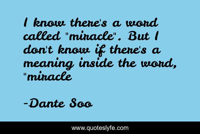 This page presents the quote "I know there's a word called "miracle". But I don't know if there's a meaning inside the word, "miracle". Author of this quote is Dante Soo. .