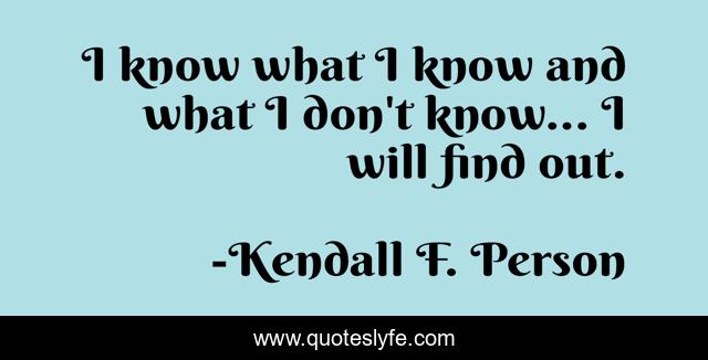 "Kendall F. Person Quotes." Quoteslyfe.com, 2025. Fri. 05 Dec. 2025. <https://www.quoteslyfe.com/quote/I-know-what-I-know-and-what-31150>.