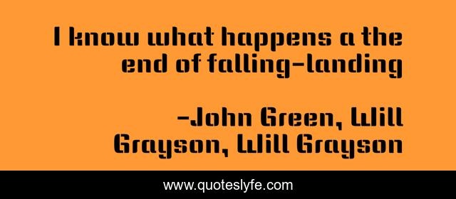 This page presents the quote "I know what happens a the end of falling-landing". Author of this quote is John Green, Will Grayson, Will Grayson. This quote is about love, falling-in-love, true, landing, affection,.
