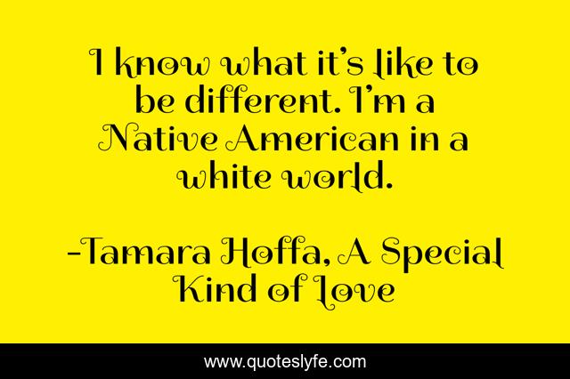 This page presents the quote "I know what it’s like to be different. I’m a Native American in a white world.". Author of this quote is Tamara Hoffa, A Special Kind of Love. This quote is about contemporary-romance, cowboy, firefighter, multicultural, bbw-romance, western,.