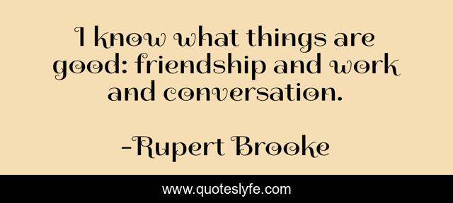 This page presents the quote "I know what things are good: friendship and work and conversation.". Author of this quote is Rupert Brooke. .