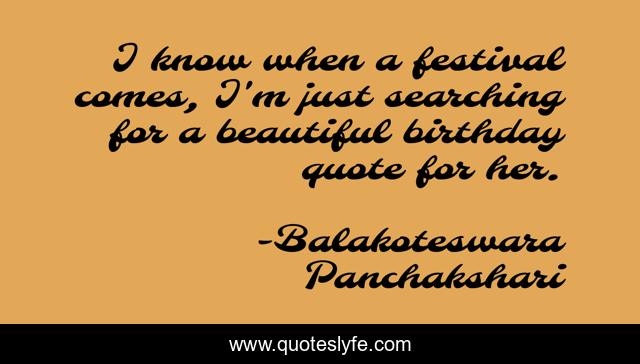 This page presents the quote "I know when a festival comes, I'm just searching for a beautiful birthday quote for her.". Author of this quote is Balakoteswara Panchakshari. This quote is about life, love, feelings, quotes, birthday, affection,.