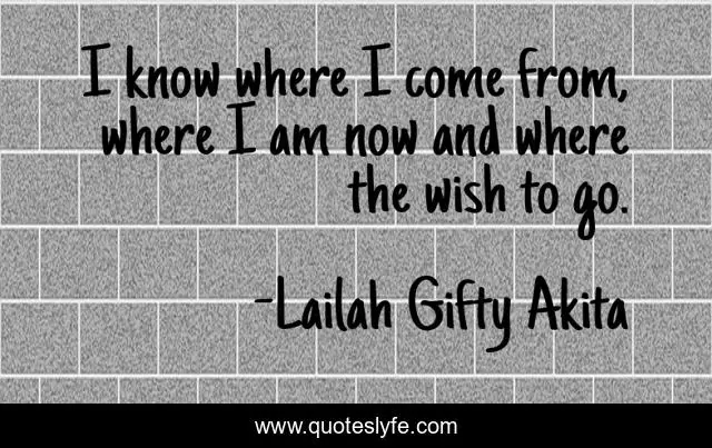 This page presents the quote "I know where I come from, where I am now and where the wish to go.". Author of this quote is Lailah Gifty Akita. This quote is about wisdom-of-lailah-gifty-akita, path, strong-woman, spirituality,.