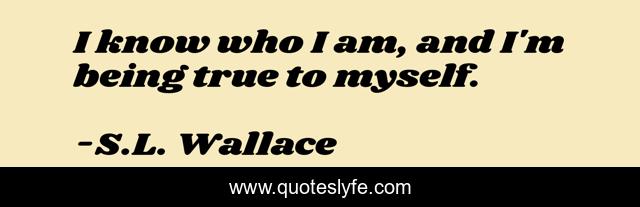 This page presents the quote "I know who I am, and I'm being true to myself.". Author of this quote is S.L. Wallace. This quote is about political-thriller, dystopia, sci-fi, scifi,.