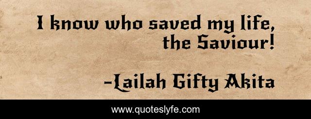 This page presents the quote "I know who saved my life, the Saviour!". Author of this quote is Lailah Gifty Akita. This quote is about life, lailah-gifty-akita-affirmations, christian, salvation, repent, saved, grace,.