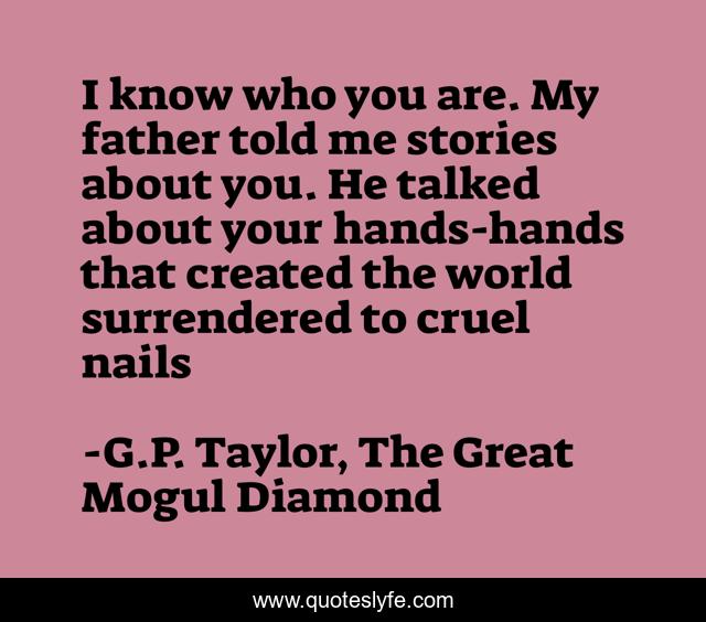 "G.P. Taylor, The Great Mogul Diamond Quotes." Quoteslyfe.com, 2025. Sat. 06 Dec. 2025. <https://www.quoteslyfe.com/quote/I-know-who-you-are-My-father-26302>.