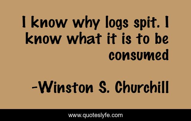 This page presents the quote "I know why logs spit. I know what it is to be consumed". Author of this quote is Winston S. Churchill. .