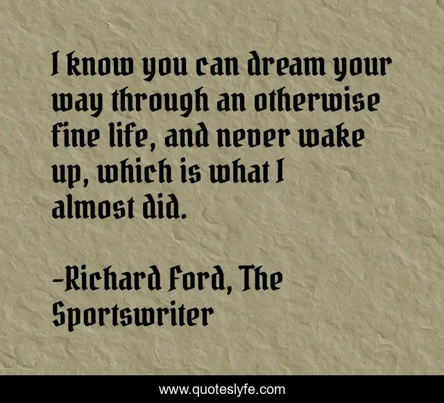 "Richard Ford, The Sportswriter Quotes." Quoteslyfe.com, 2025. Mon. 08 Dec. 2025. <https://www.quoteslyfe.com/quote/I-know-you-can-dream-your-way-53266>.