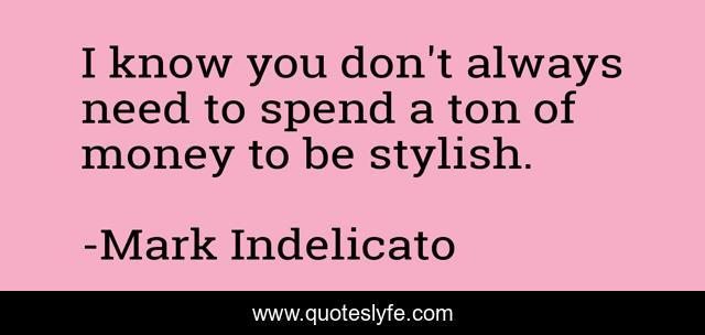 This page presents the quote "I know you don't always need to spend a ton of money to be stylish.". Author of this quote is Mark Indelicato. .