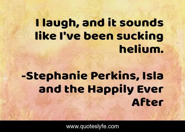 This page presents the quote "I laugh, and it sounds like I've been sucking helium.". Author of this quote is Stephanie Perkins, Isla and the Happily Ever After. This quote is about contemporary-romance, standalone, ya, chick-lit, contemporary, teen-fiction, stephanie-perkins, isla-and-the-happily-ever-after,.